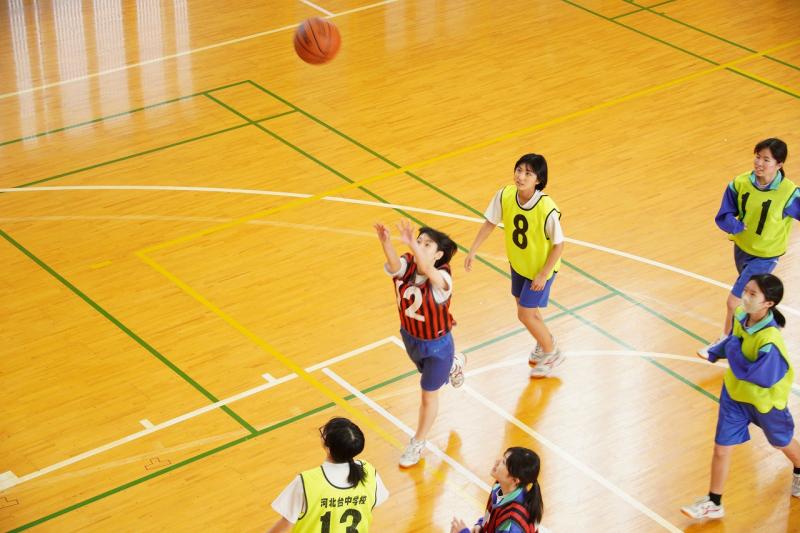 部活動の地域移行ということで、河北台中学校バスケットボール部としての最後の活動を行いました。今日は1,2年生だけでなく卒業生も来てくれて、試合なども入れながら楽しく活動することができました。