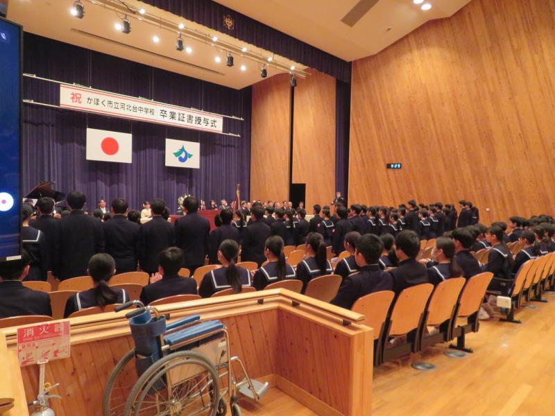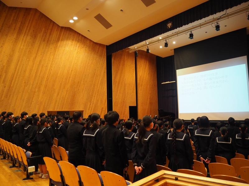 その後、全校生徒で「正解」という曲を歌いました。講堂いっぱいに全員の歌声が響き渡り、一人一人気持ちを込めて歌う姿に感動しました。素敵な卒業式になることでしょう。