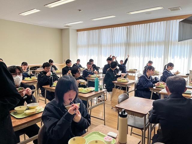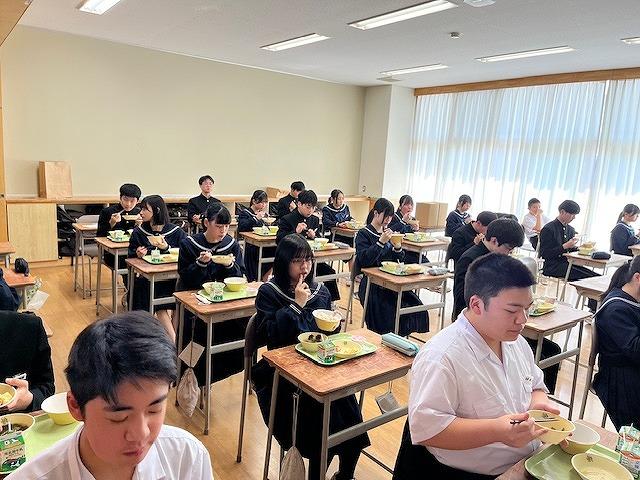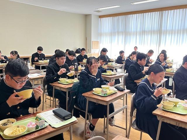 また、本日の給食は、3年生の卒業のお祝い給食でした。3年生は最後の中学校での給食を味わっていました。