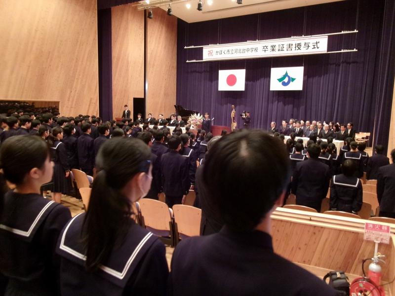 その後4限目に離任式が行われ、河北台中学校に力を尽くしてくださった11名の先生方とお別れをしました。これまでありがとうございました。