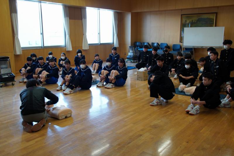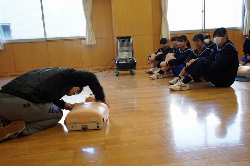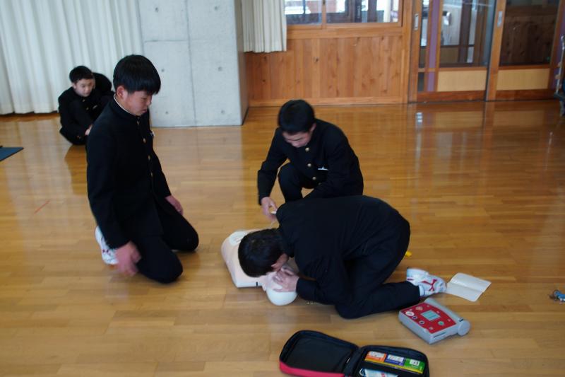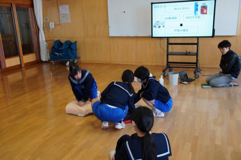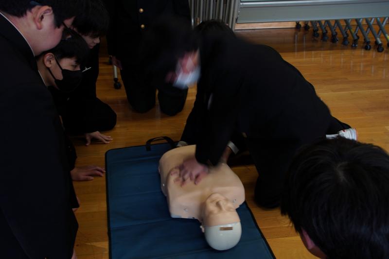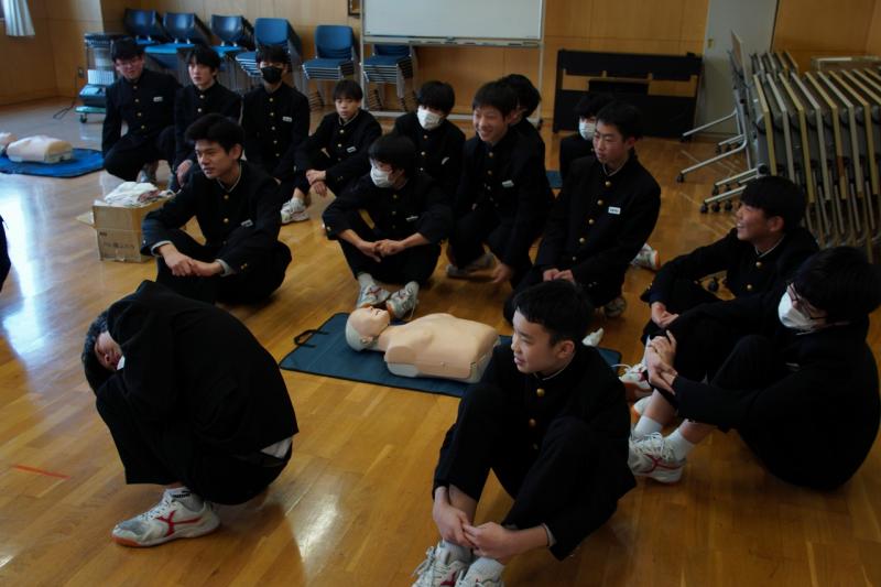 本日、1限目~3限目、2年生の保健体育の時間を使って救命救急講習会を行いました。心肺蘇生について先生から話を聞いた後、実際に人形を使って心肺蘇生の演習を行いました。生徒たちは実際やってみることで、どのくらいの速さでどのくらい力が必要なのかなど理解することができました。