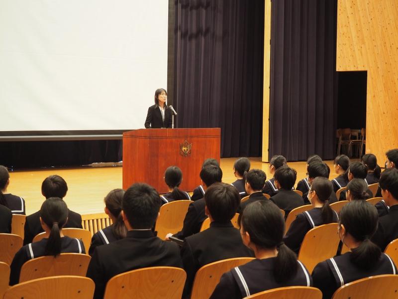 生徒たちは真剣に川島さんのお話に耳を傾けていました。体の成長と心の変化、大人になることなどについて深く考える時間となりました。自分を理解し、相手を理解し、時と場に応じた適切な行動、発言、考え方ができるよう、自分磨きをこれからもやっていってほしいと思います。