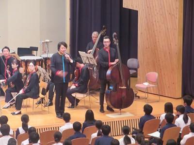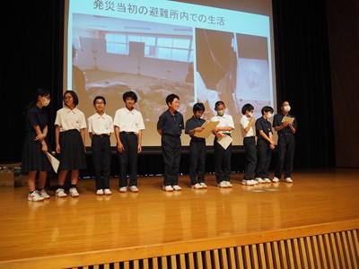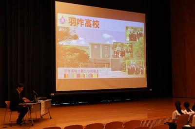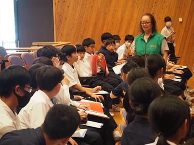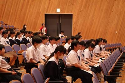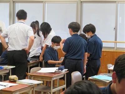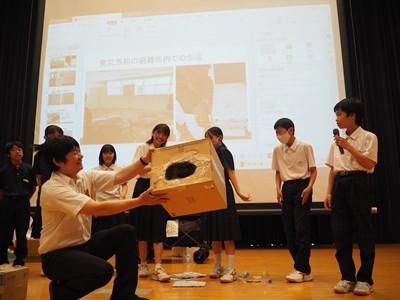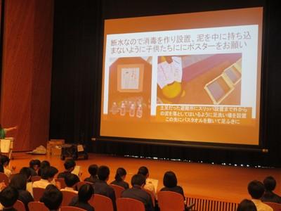 授業や中学校生活、そして中学校の楽しい行事などについて先輩たちが説明しました。どちらの小学校でも、6年生は先輩たちの説明や体験談に真剣に耳を傾け、数か月後には中学生になることをイメージして聞いてくれました。