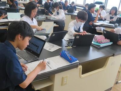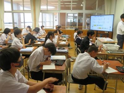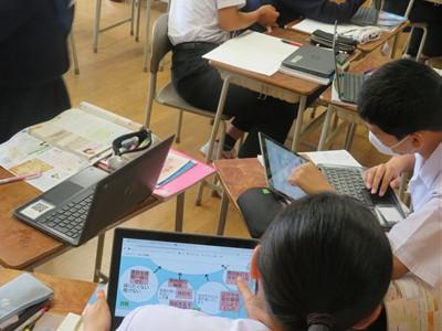 今、2年生は総合的な学習の時間での学びを進めています。来年春の修学旅行(関西方面)において、現在進めている企業とのコラボ企画「商品販売」を行う計画を進めています。