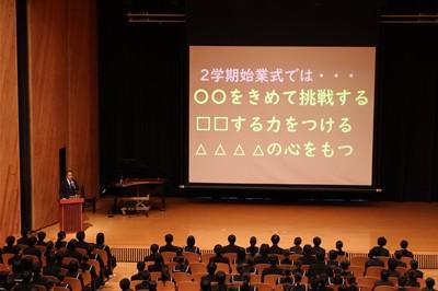 校長先生からはまず、2学期の始業式で話したこと「目標を決めて挑戦する」「回復する力をつける」「思いやりの心をもつ」の確認がありました。生徒の皆さんはどれだけ達成できたでしょうか。
