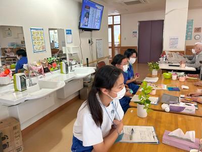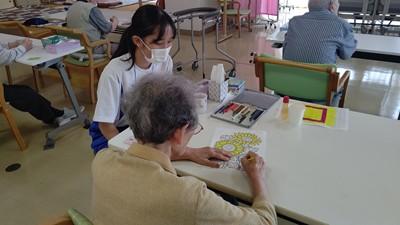 17日(水)、学校ボランティアサークル「myan」のメンバーを含む2年生2名、1年生2名の計4名で、先月希望者で製作したプラ板キーホルダーを、白尾地区にあるデイサービスに行き、そこの高齢者(利用者)にプレゼントして来ました。