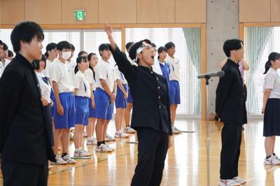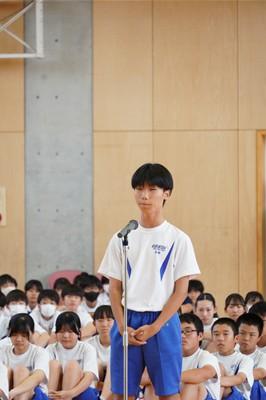 次年度前期生徒会役員の立候補者による立会演説会と選挙が行われました。立候補者は全校生徒に向けて、生徒全員が楽しいと思える学校を作りたい、笑顔の絶えない学校にしたいと訴え、河北台中のために何ができるか、どのようなことを取り組みたいかなど、熱い思いを真剣に語りかけていました。河北台中のリーダーとして、ぜひ頑張ってほしいと思います。