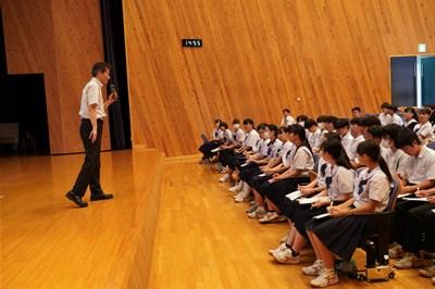 本日、1限目~3限目、2年生の保健体育の時間を使って救命救急講習会を行いました。心肺蘇生について先生から話を聞いた後、実際に人形を使って心肺蘇生の演習を行いました。生徒たちは実際やってみることで、どのくらいの速さでどのくらい力が必要なのかなど理解することができました。