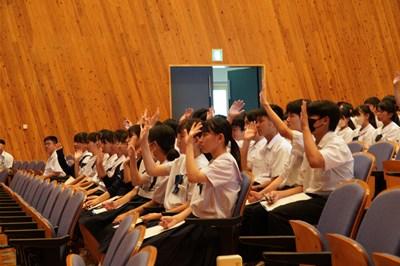 その後、全校生徒で「正解」という曲を歌いました。講堂いっぱいに全員の歌声が響き渡り、一人一人気持ちを込めて歌う姿に感動しました。素敵な卒業式になることでしょう。