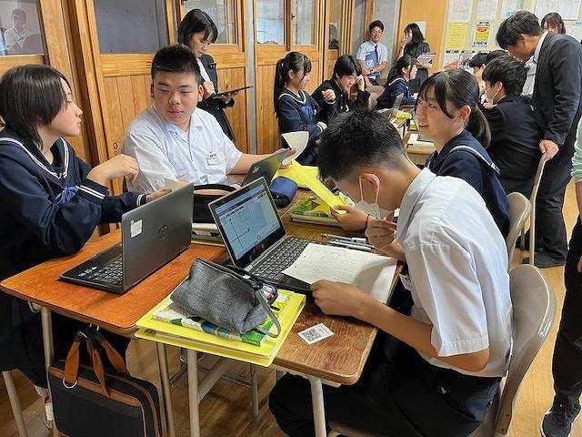 授業では、羽生さんと松原さんという二人の登場人物の意見を読み、賛成か反対かを選択し、選択した立場から人工知能について考えるものでした。生徒達は自分の考えを互いにグループで交流し、様々な立場から人工知能について考え、自分の主張に説得力を持たせていました。