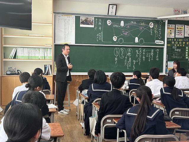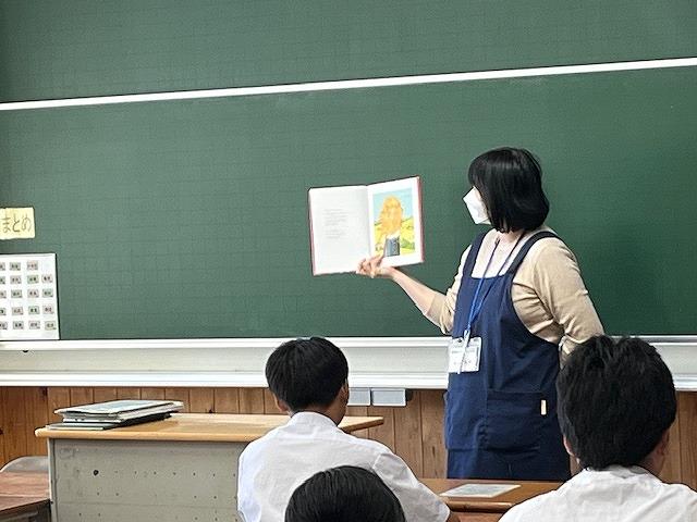 朝、2年生の各クラスで読み聞かせを行いました。1組は読み聞かせボランティアのやまんばさん、2組は担任の玉井先生、3組は司書の油谷さんが読み聞かせを行いました。生徒達は姿勢良くしっかりと話を聞く様子があり、良い朝のスタートが切れています。