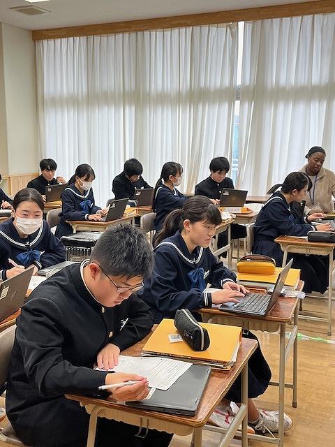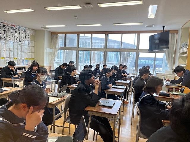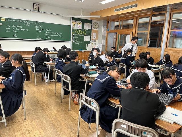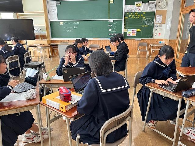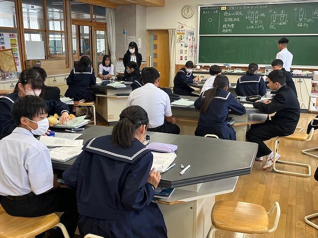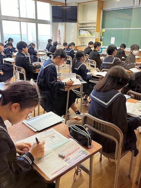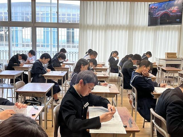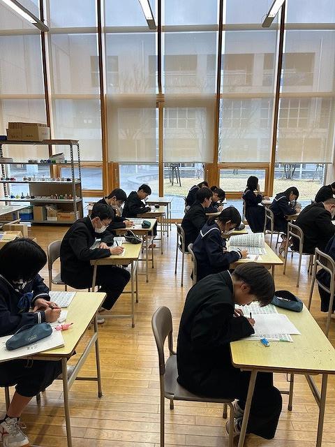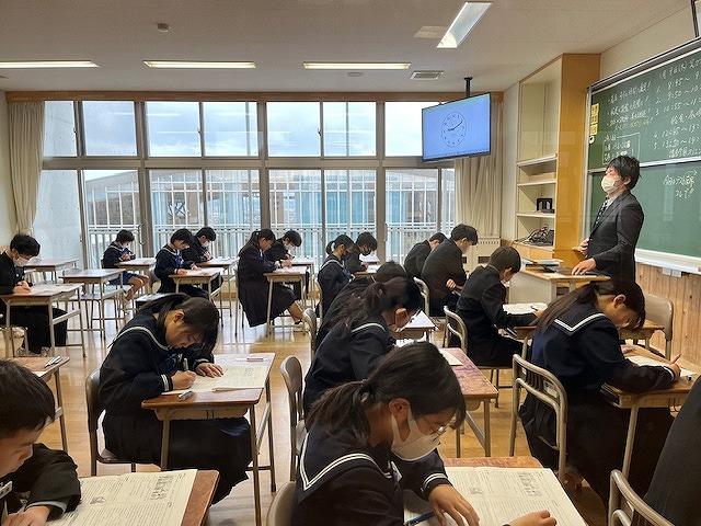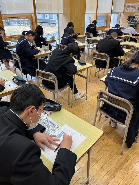 3年生は、第2回河北郡市統一テストが行われ、生徒達は時間いっぱい問題に真剣に取り組む姿がありました。また、他の学年の授業では、生徒達は課題に対し、個で考えたりグループで話し合ったりなど楽しく授業を受けていました。