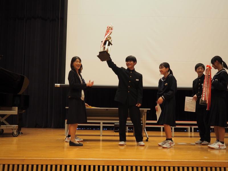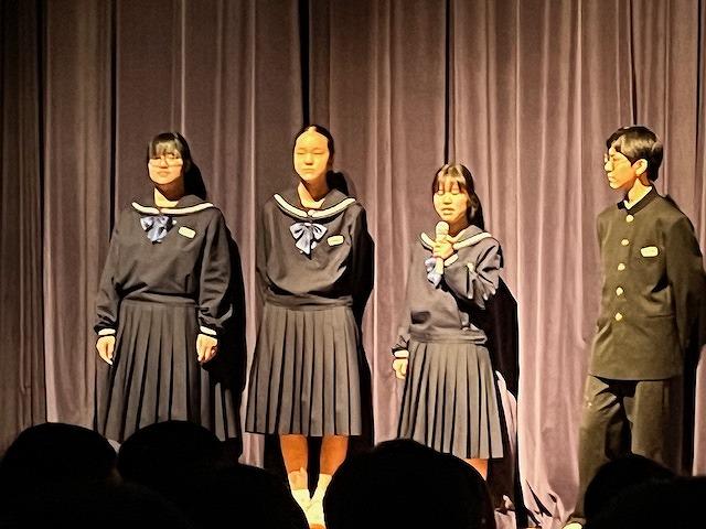 来場された保護者の方からは、「とても素晴らしい合唱でした。」「合唱がどのクラスも上手で感動をもらいました。」「劇も良かった」など、大好評の感想をたくさんいただきました。生徒達も、やり切った表情でエンディングを迎えていました。今日の経験をこれからの学校生活につなげていってほしいと思います。