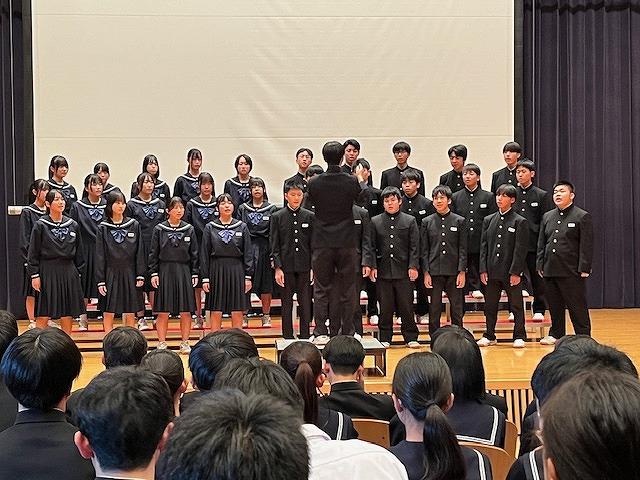 その後、全校生徒で「正解」という曲を歌いました。講堂いっぱいに全員の歌声が響き渡り、一人一人気持ちを込めて歌う姿に感動しました。素敵な卒業式になることでしょう。