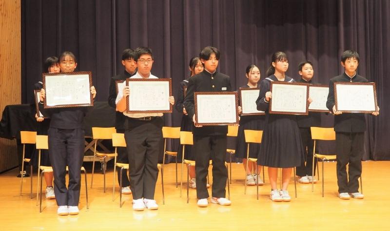 また、表彰伝達も行われ、多くの生徒がステージに上がりました。