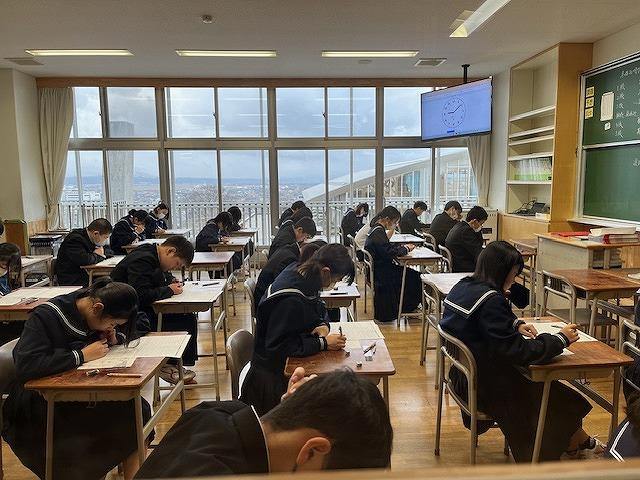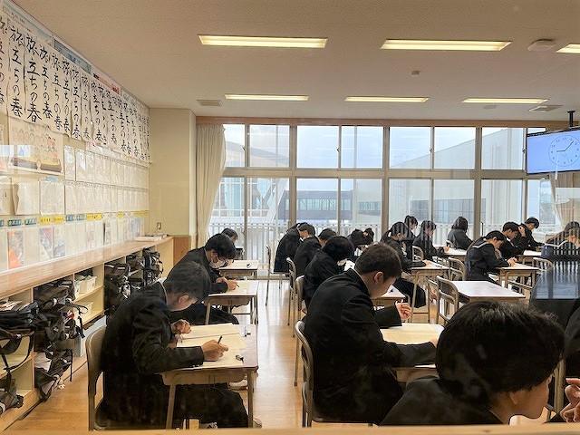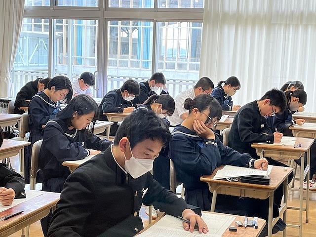 3年生は第3回郡市統一テスト、2年生は県評価問題がありました。2,3年生ともに時間いっぱい、一問でも多く解こうと問題に真剣に取り組む様子がありました。また、3年生においては、受験を意識し、昼休みの時間や放課後の1階ラウンジでの自主学習に取り組む生徒が増えています。