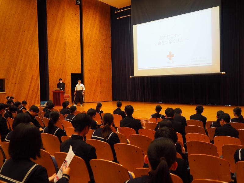 本日、3年生を対象に学校における献血への理解増進に向けた取組の一環として、石川県赤十字血液センタ-の方を講師に本校で献血セミナーが行われました。