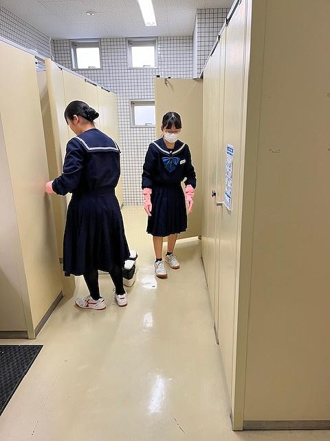 生徒たちは、時間いっぱい清掃に取り組んでいます。教室、特別教室、廊下、トイレなど自分の担当の清掃場所を時間いっぱいきれいにしています。