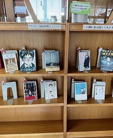 図書館には読み聞かせの本の紹介や、2月に関係する本がきれいに展示されています。油谷司書さんが毎月工夫してくれています。多くの生徒達が図書館に来て、たくさんの本を読んでほしいと思います。