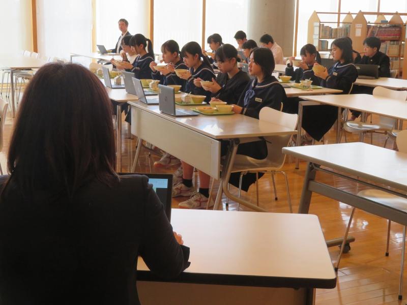 学校公開ウィークですが、本日、PTA行事として「給食試食会、食育講座」を開催しました。保護者21名の参加があり、1部:生徒が食べるメニューと同じ給食を試食、2部:細山栄養教諭による食育講座で実施しました。どの保護者も給食を美味しそうに味わい、「美味しかった。お腹がいっぱいになった。」とつぶやかれていました。