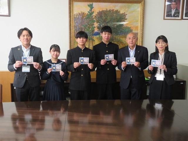 かほく支店長様より寄贈状を受け取る生徒会長の能口さん