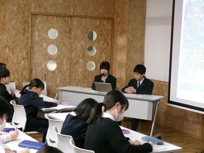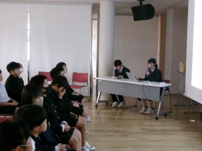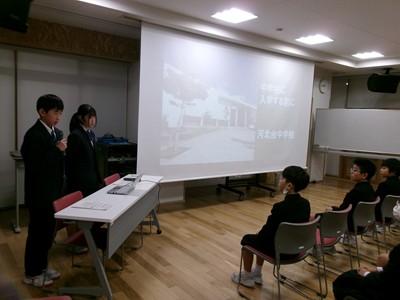 授業や中学校生活、そして中学校の楽しい行事などについて先輩たちが説明しました。どちらの小学校でも、6年生は先輩たちの説明や体験談に真剣に耳を傾け、数か月後には中学生になることをイメージして聞いてくれました。