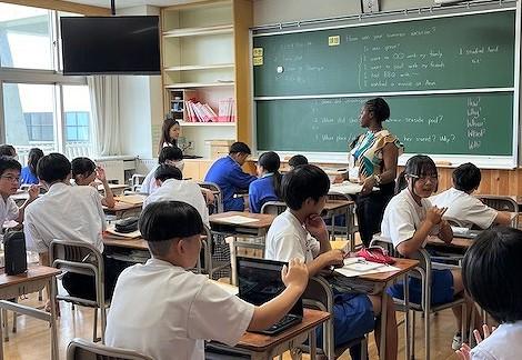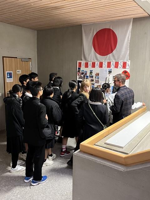 壁には日本の国旗と、日本が紹介されている掲示が見えます。文化交流ですね。