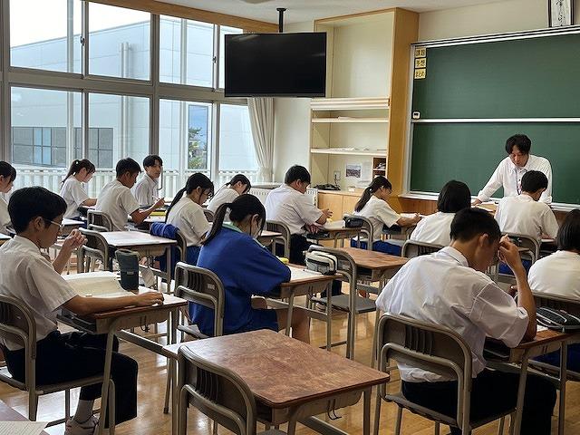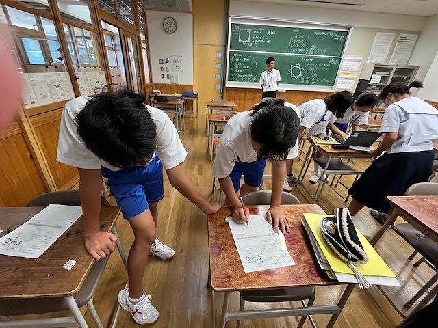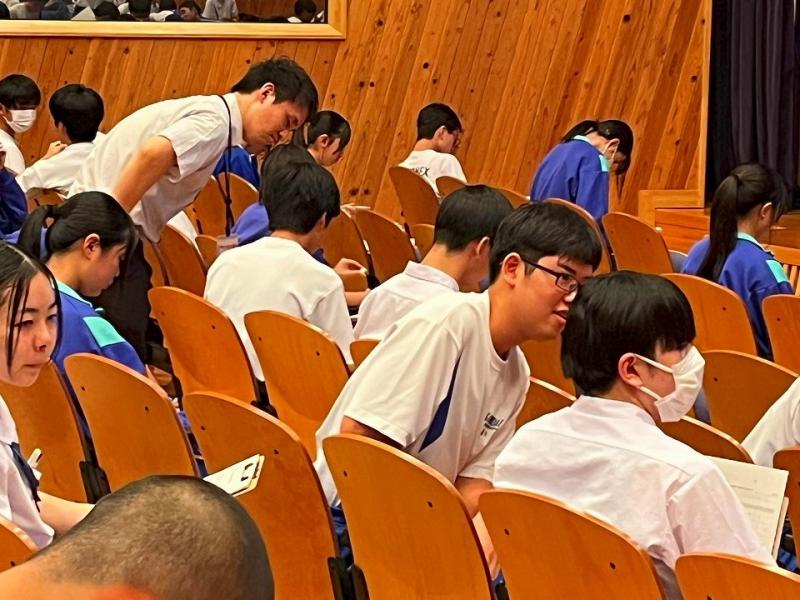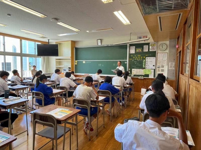 6限目に3年生を対象に、高校説明会を行いました。1日目である今日は、遊学館高等学校の先生が学校の特色や高校の授業内容、部活動等について詳しく説明していただきました。生徒たちは高校の先生の説明をメモをとりながらしっかり聞いていました。