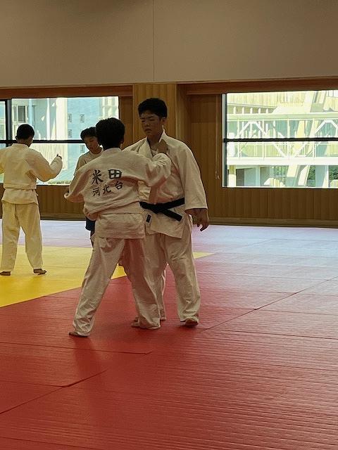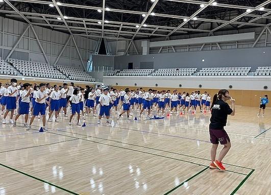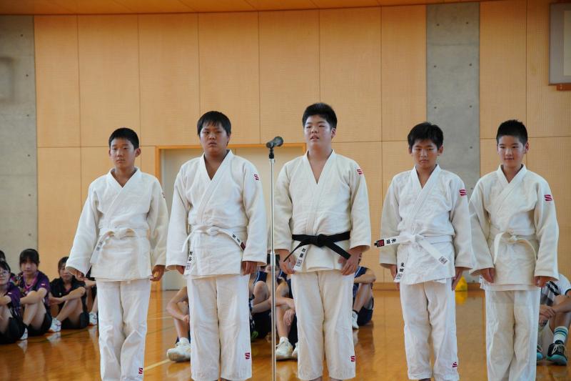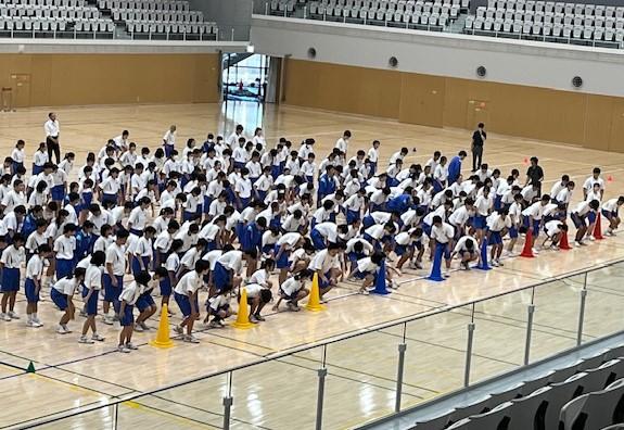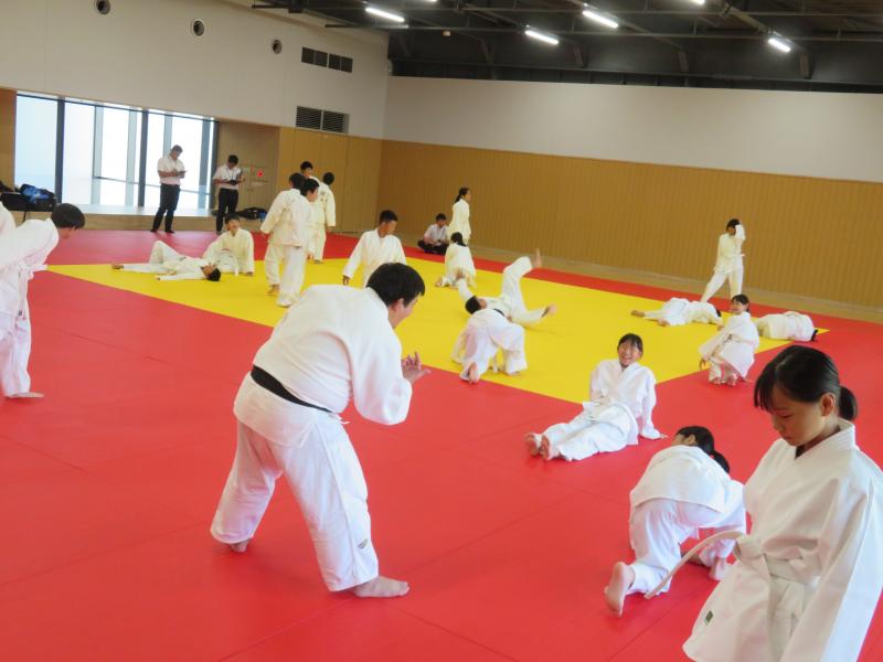 9日(水)、先生方の研究授業があり、本校では1年3組の保健体育(柔道)の授業が行われました。市総合体育館の柔剣道場で授業があり、多くの先生方に見守られながら、前まわり受け身を体得できるよう、一生懸命に取り組んでいました。上手に前まわり受け身ができた時、「できた!」と言って、とてもうれしそうな顔をする生徒がほとんどでした。笑顔いっぱいで柔道を楽しんでいました。