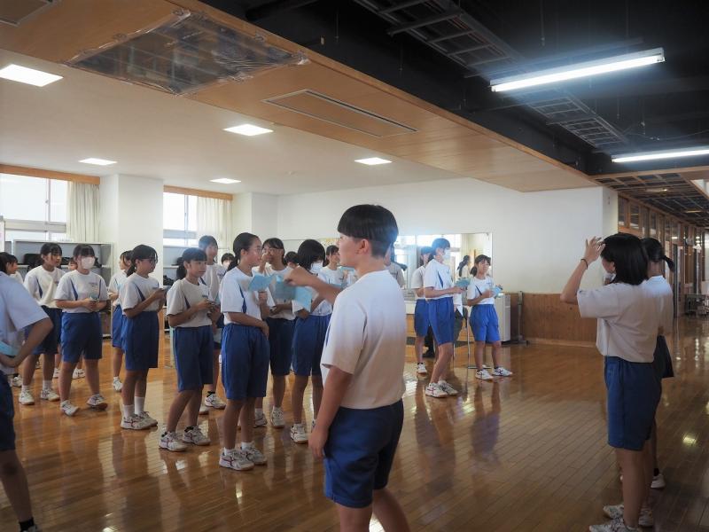 さよならパーティーでは、ダンスをしたり、クイズに挑戦したりと楽しい時間を過ごしました。本校2年生の赤井さんがダンスについて説明しました。