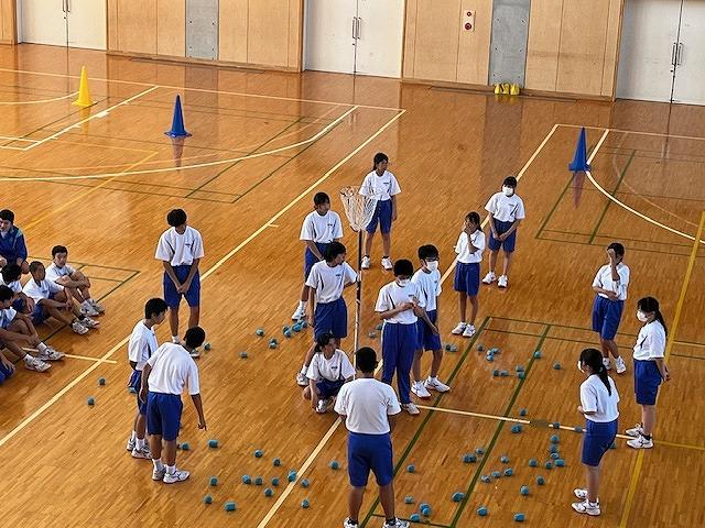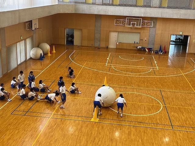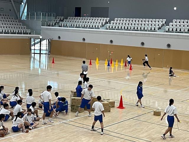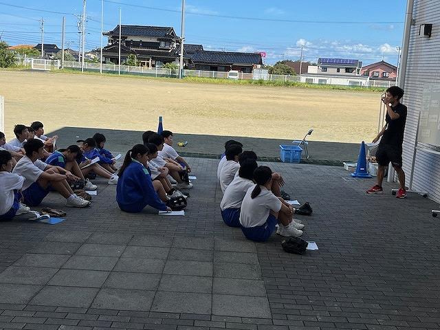 3年生体育の授業において、本校に教育実習にきている高井さんが研究授業を行いました。3年生のソフトボールの授業では「タイミングを合わせてボールを捉えよう」を課題に、バットでボールを打つ練習をしました。はじめはあまり打てなかった生徒も何回か練習をすることで遠くまでボールを打つことができるようになり笑顔になる様子が見られました。