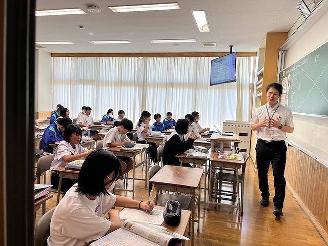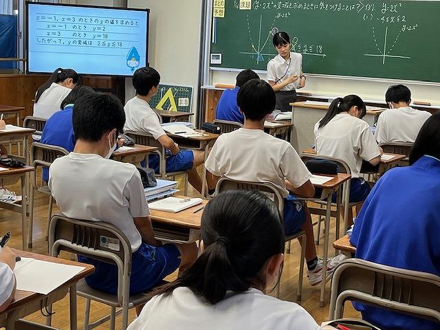 今月3日より、本校卒業生で大学4年生の北川さん(理科)、小路さん(英語)、高井さん(保健体育)の3人が教育実習に来ています。今週から教育実習生の授業が始まり、事前の教材研究、担当の先生のアドバイスをもとに、生徒たちに分かりやすい授業をしようと頑張っています。教育実習生の北川さん、小路さんは今月21日(金)まで、高井さんは今月28日(金)まで本校で教育実習を行います。