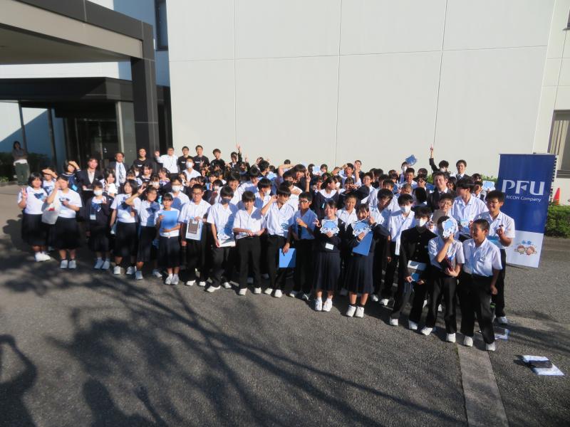 11日(木)午後、1年生は総合的な学習の時間のSDGs学習として、PFUさんを企業見学しました。技術的に世界に誇るPFUさんが、新たに開発したゴミ分別用スキャナーを開発したというニュースを知り、会社を訪問し、学習させていただきました。