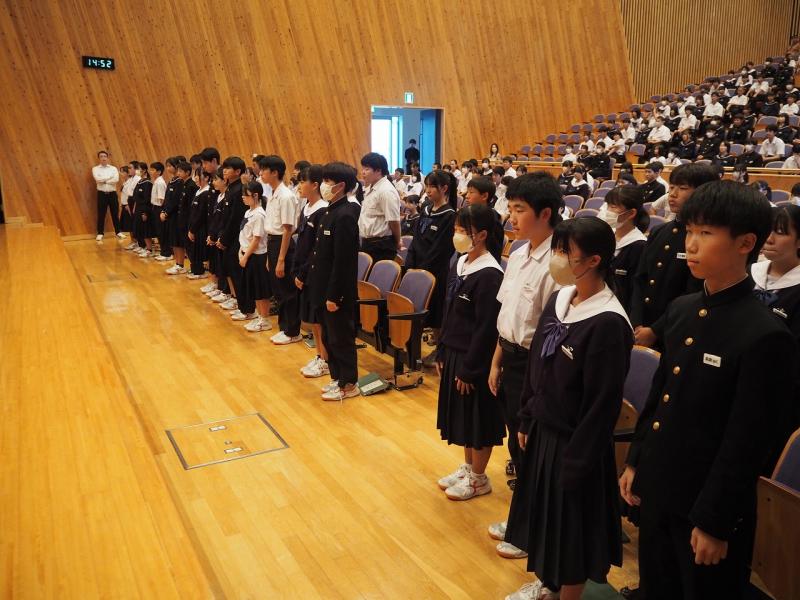 その後、前期生徒会役員の退任式と後期生徒会役員および学級役員の認証式を行いました。