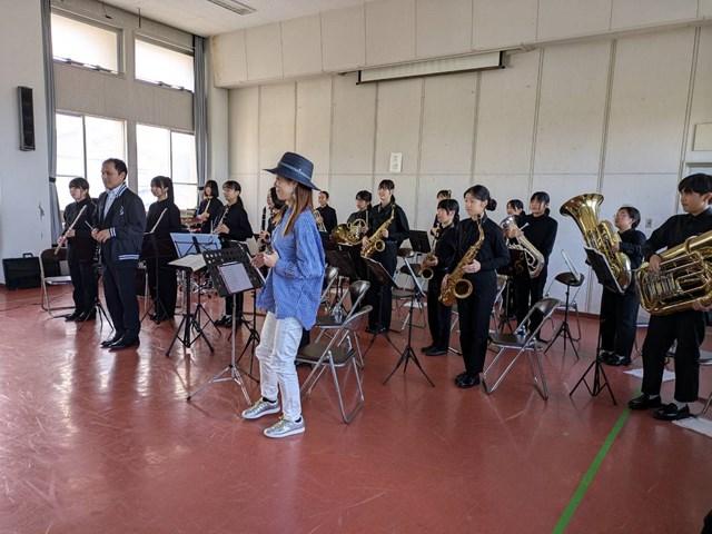 10月20日(日)に行われた松浜区文化祭に、本校吹奏楽部が出演しました。プロジャズシンガー&ピアニストの果奈さんとのコラボもありました。