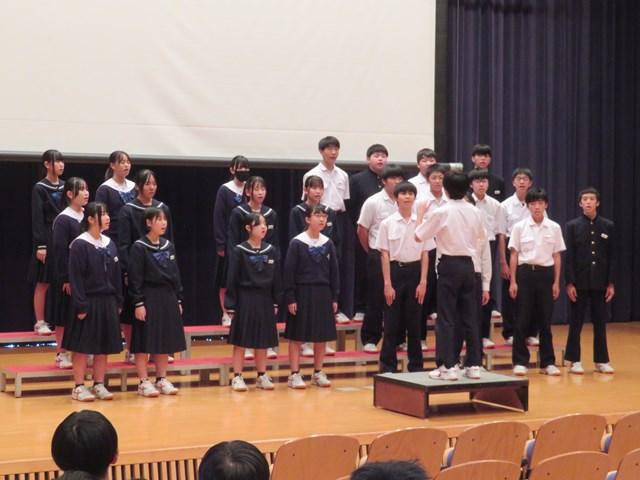 10月30日(水)午後、令和6年度文化祭(合唱コンクール)を開催します。先週、放課後の合唱練習も始まり、今日の6時間目に、3年生の合唱リハーサルがありました。どのクラスもさすが3年生という歌声を聞かせてくれました。