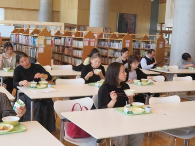 学校公開ウィークですが、本日、PTA行事として「給食試食会、食育講座」を開催しました。保護者21名の参加があり、1部:生徒が食べるメニューと同じ給食を試食、2部:細山栄養教諭による食育講座で実施しました。どの保護者も給食を美味しそうに味わい、「美味しかった。お腹がいっぱいになった。」とつぶやかれていました。