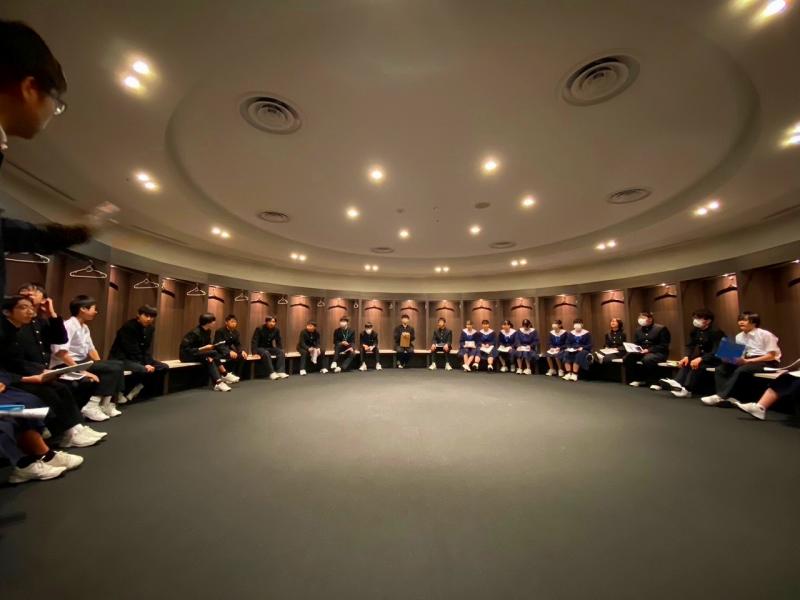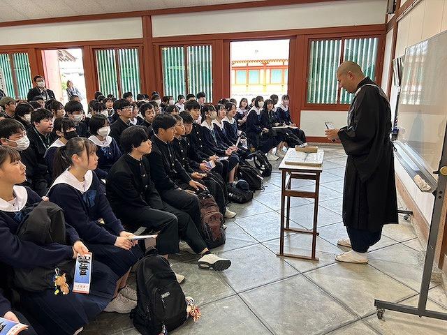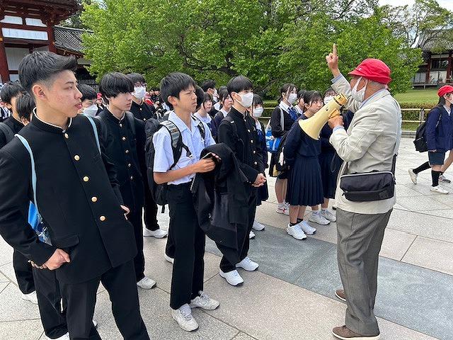 修学旅行2日目は薬師寺に行きました。お坊さんのご法話を全員で聞き、薬師寺を見学しました。法話ではお坊さんのお話に生徒たちは皆集中して聞いていました。その後、国宝の東塔の前で全員で記念撮影をとりました。