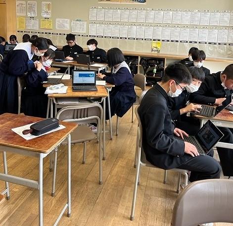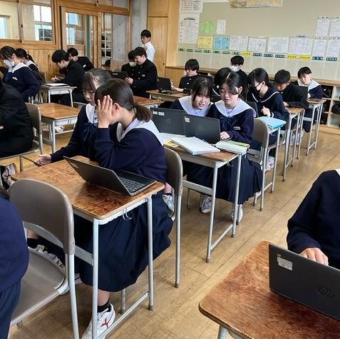 3年生は、先週3日間の修学旅行のまとめ学習としてクロムブックを使い旅行記を作成しました。1人でレイアウトを工夫して作成する人や、2,3人や複数で楽しく、訪れた場所での体験など話をしながら作成する人など、それぞれ頑張っている姿がありました。どんな旅行記になるか楽しみです。