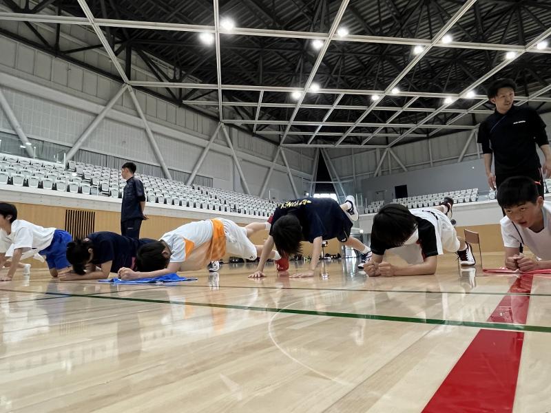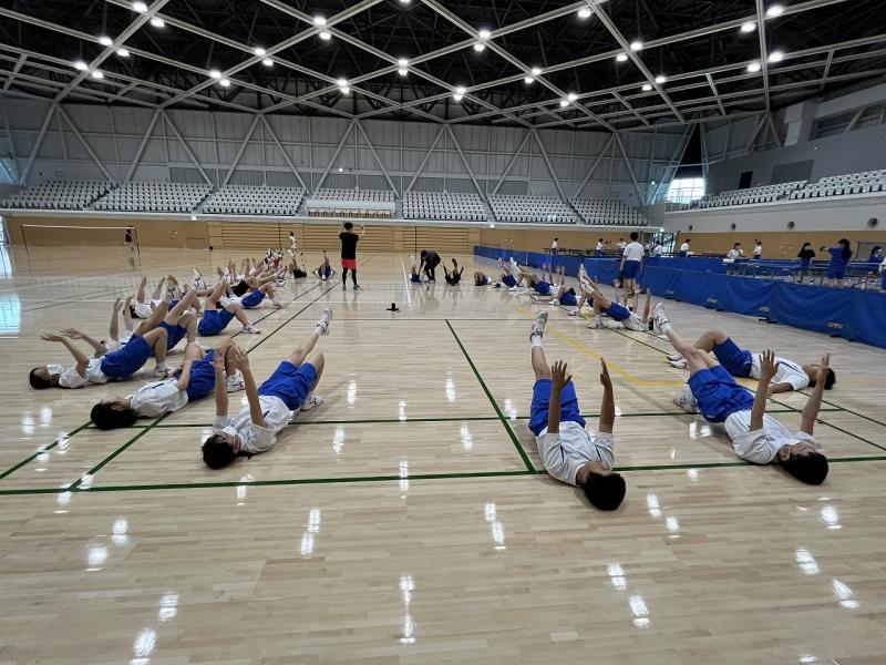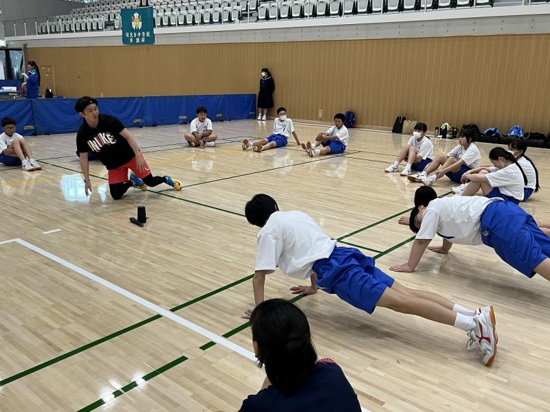 今年度、本校では運動部にに所属している1年生対象に、必要な体幹やストレッチ、栄養について学ぶことを目的に、「部活動支援講座」を開設することになりました。今日はその1回目「体幹・自重トレーニング」を行いました。野球部、卓球部、ソフトテニス部、バレー部、バスケット部、バドミントン部の1年生が参加し、クラブパレットのインストラクターの指導のもと楽しく活動することができました。
