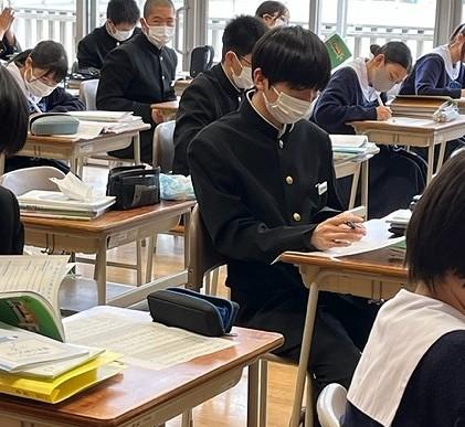 朝学習の時間に、3年生は講座学習、2年生はNIE学習(新聞記事で学習)、1年生は読書を静かな中で取り組んでいます。