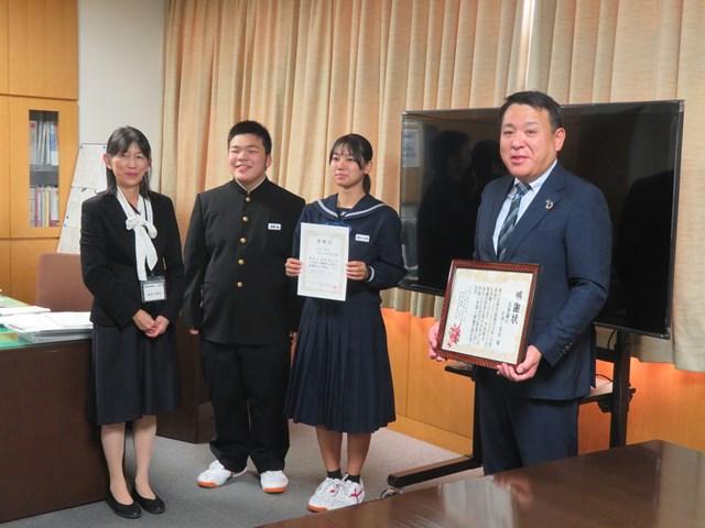 生徒を代表して感謝状を渡す生徒会副会長の德應さん