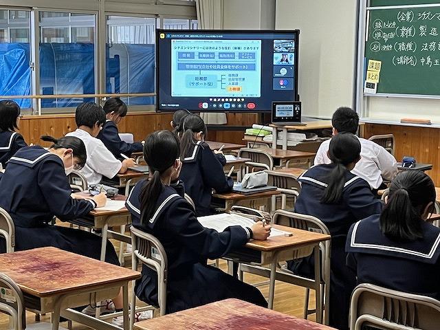 本日、1年生は5,6限目にキャリアチャレンジデイOn-Line Meets(オンラインミーティング)を行いました。シチズンマシナリー(株)、ネットワンシステムズ(株)、野村ホールディングス(株)、三井化学(株)の4つの企業の方を講師に生徒達は、働くことについて学びました。