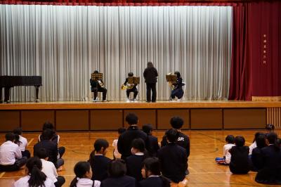4月15日(火)昼休みに第二講堂で後期課程の吹奏楽部による歓迎演奏が行われました。