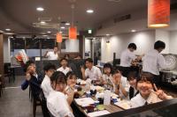 海友会は、前期課程と後期課程が仲を深めることを目的とした交流です。第1回は、生徒会執行部が企画した七夕に関するお題や国民的アニメについてのクイズをランチルームで行い、その後、第2講堂に移動してじゃんけん列車を行いました。昼休み中でしたが、ほとんどの児童生徒が参加し、学年を超えて仲良く交流する素晴らしい姿が見られ、大成功でした。