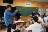 9年生生徒とその保護者の方を対象とした高校説明会を行いました。加賀高校、大聖寺実業高校、大聖寺高校、小松大谷高校の先生方が来校し、それぞれの学校の特色や望まれる生徒像などのお話をしていただきました。どの高校も、生徒の自主性を大事にしていることや進路に向けて工夫して取り組んでいる様子などが、よくわかる説明会でした。9年生は、聞き逃さないよう集中していました。
