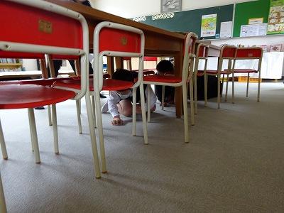 休み時間、突然 緊急地震速報の音。予告なしの地震発生時の訓練です。