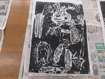 図工室、版画が刷り上がりました。