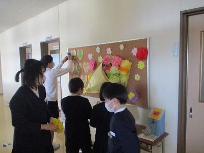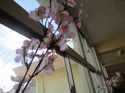 1階の廊下には、卒業式にむけて 桜の飾りもつけました。