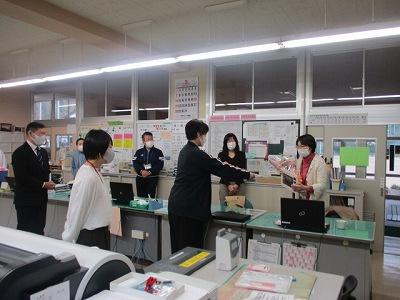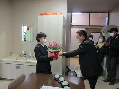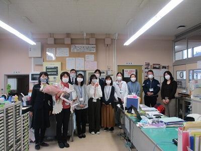 職員室でも、お花や写真などをお渡しして感謝の会をしました。